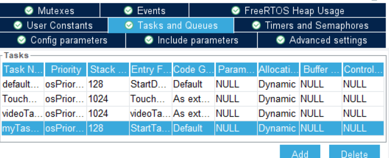 아무튼 위와 같이 RTOS 설정에서 Task를 추가할 수 있는데, 기본 테스크 이외에 하나더 추가해보겠다.