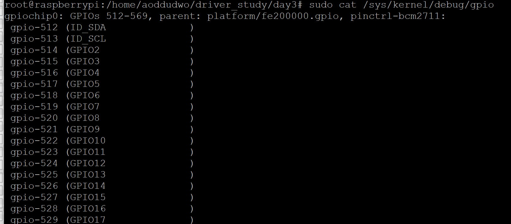 sudo cat /sys/kernel/debug/gpio